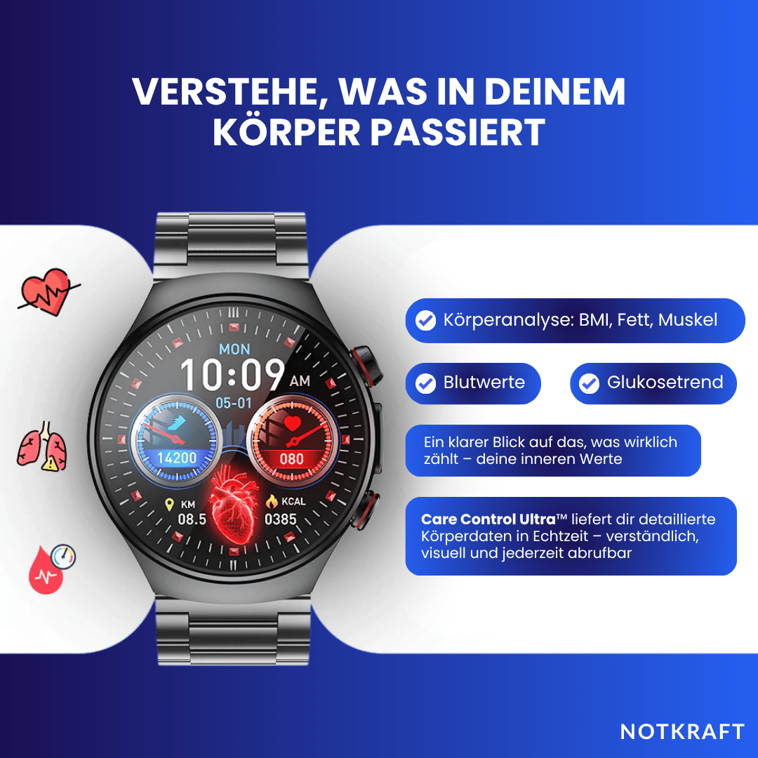 Care Control Ultra™ führt eine kompakte Gesundheitsanalyse deiner wichtigsten Werte durch: