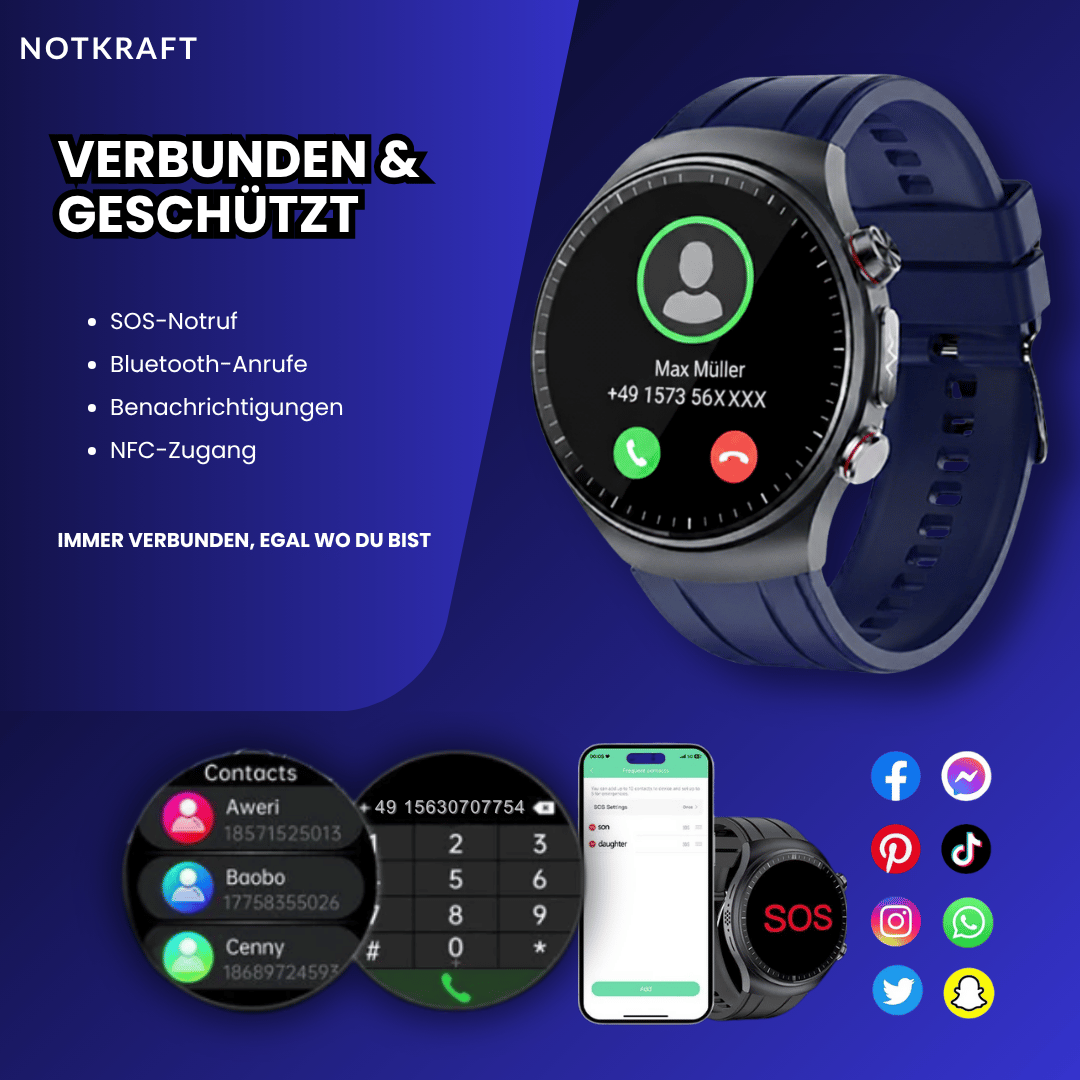 | SOS-Notfall | Automatische Alarmierung von bis zu 5 Kontakten |